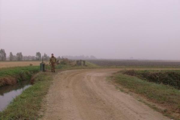 | materializzazione | Centrino Regione Lombardia infisso sul cordolo del tombino in calcestruzzo della strada non asfaltata sulla roggia Cocciesca, in località Cascina Kyrie. |