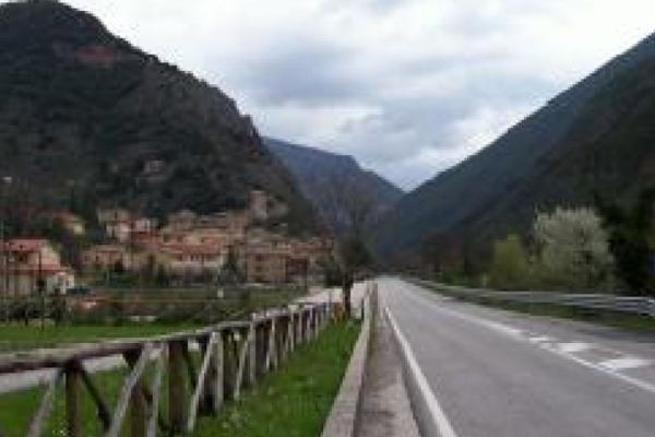 Centrino metallico infisso sullo spigolo sud-ovest del tombino in calcestruzzo della S.S. 209 della Valnerina, al Km 37+450, nei pressi dell'area verde, al bivio per Piedipaterno.