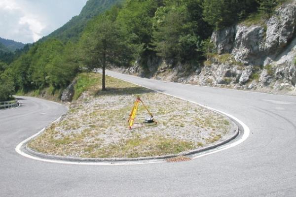 Centrino Regione Lombardia infisso sulla sommità del pilastrino in calcestruzzo, a livello suolo, ubicato all'interno del tornante all'altezza del Km. 15,900 della S.P. 58.