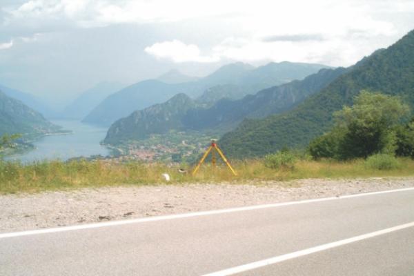 Centrino Regione Lombardia infisso sul cordolo in calcestruzzo della scolina ubicata a valle della S.P. 111, al Km. 3,595, in località Belvedere.