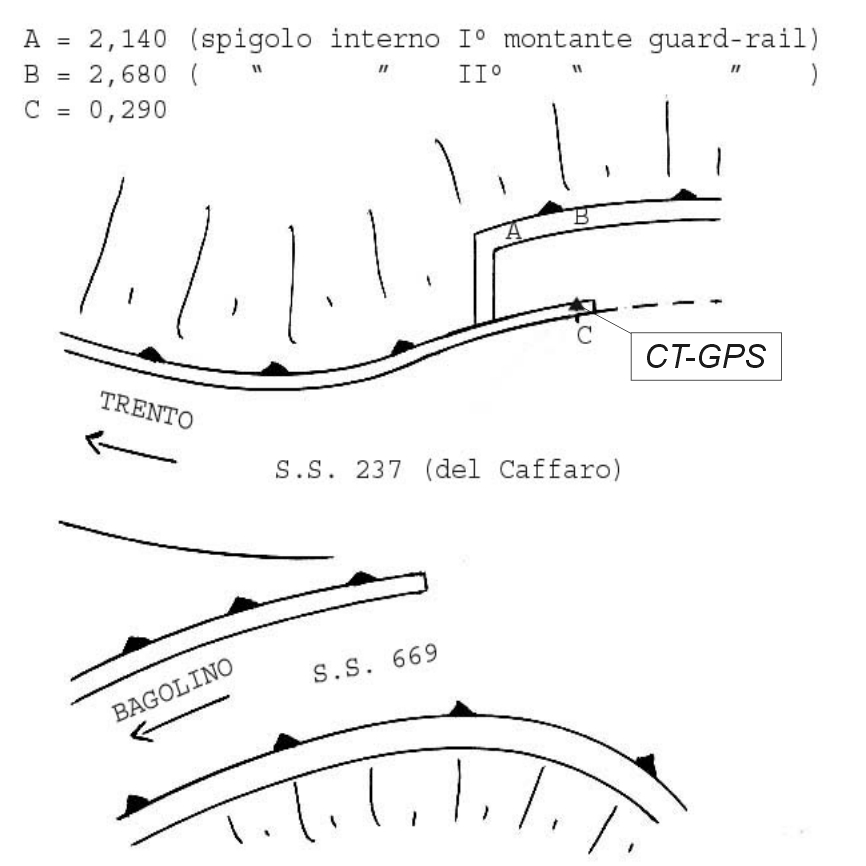 | materializzazione | Centrino Regione Lombardia infisso sull'estremità est del cordolo in calcestruzzo del parapetto in muratura a valle della S.S. 237, al km. 52,100, in località Sant'Antonio. |