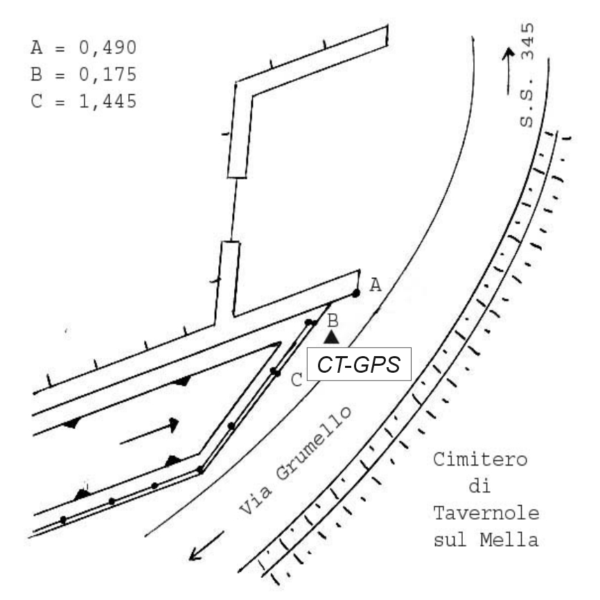 | materializzazione | Centrino Regione Lombardia infisso sullo spigono nord-ovest del cordolo del tombino in calcestruzzo di via Grumello sul torrente affluente del Mella, di fronte all'ingresso del cimitero, a Tavernole sul Mella. |