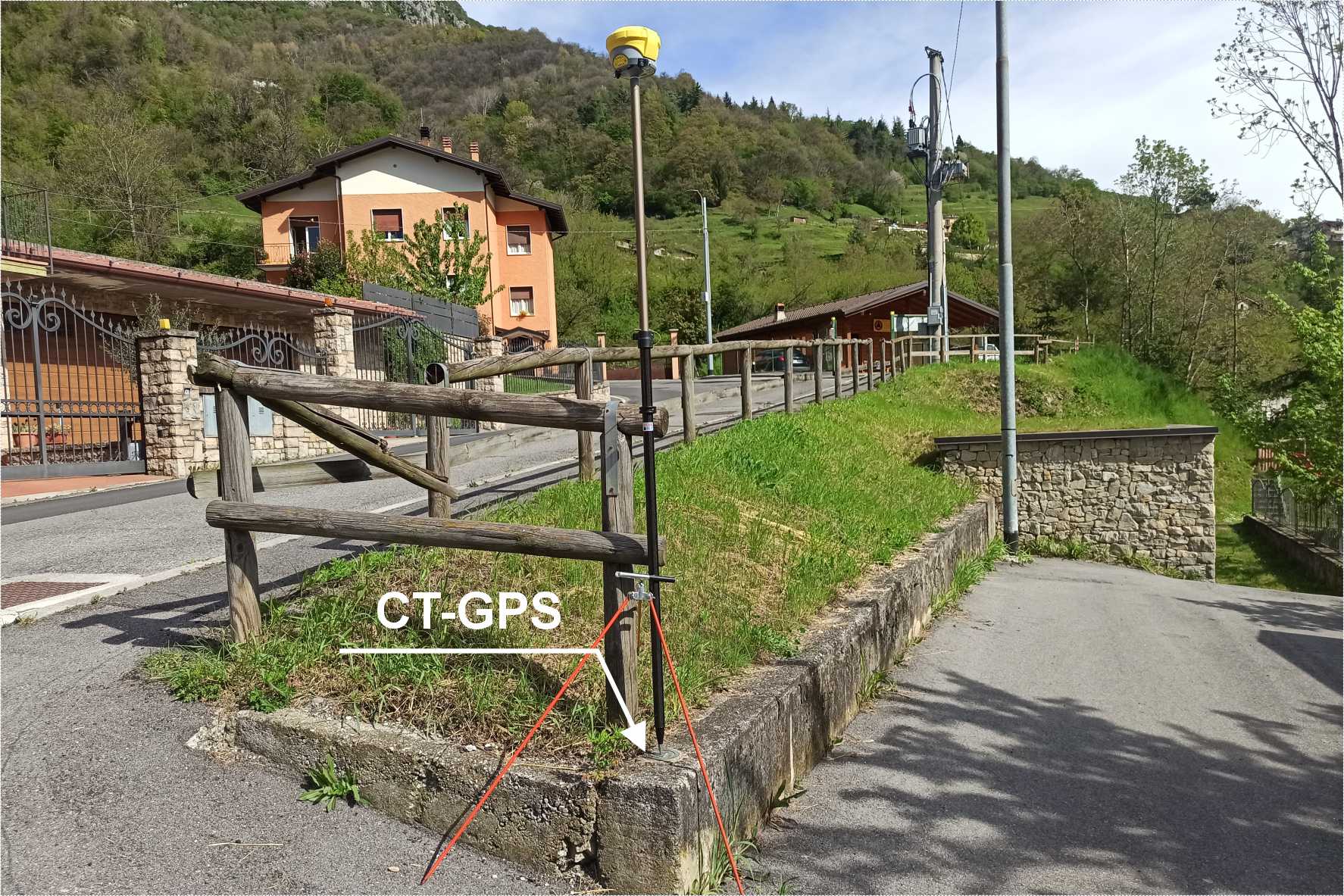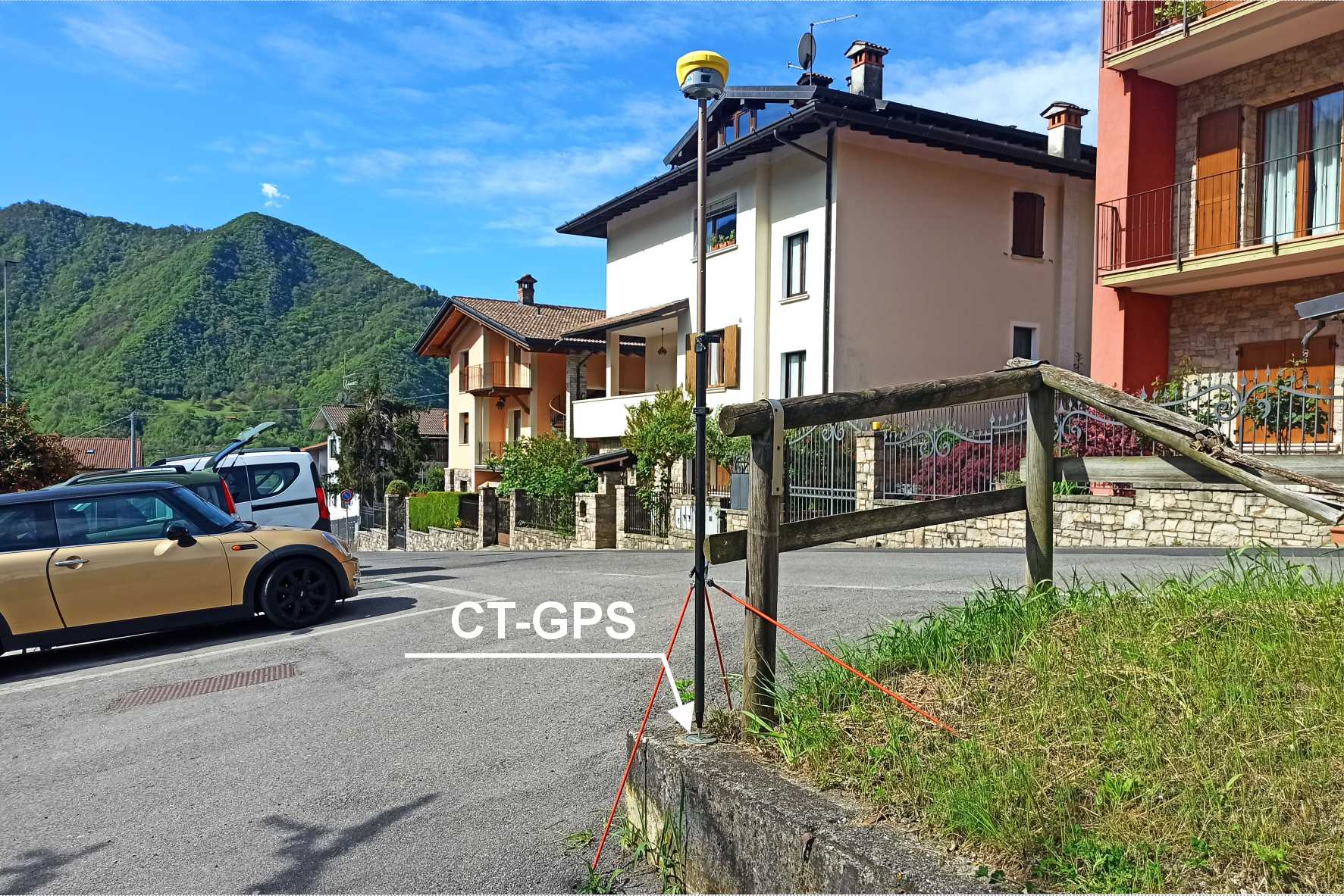 Centrino piatto del Catasto, infisso sulla sommità, lato ovest, del muro in calcestruzzo lungo la strada che dalla S.S. 345 conduce a Cesovo, in località Aleno.