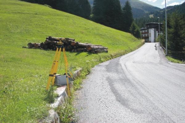 Centrino Regione Lombardia infisso sulla sommità, lato est, del muretto in calcestruzzo ubicato lungo la strada che da Spiazzi porta agli impianti di risalita, in località Spiazzi di Gromo.