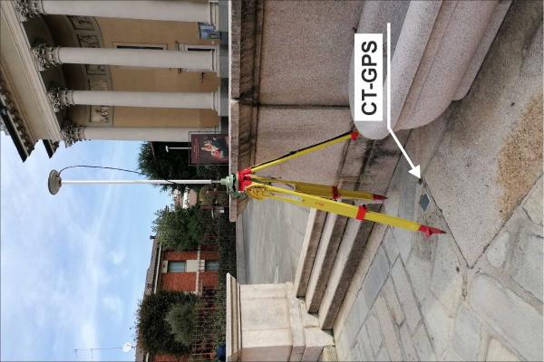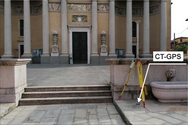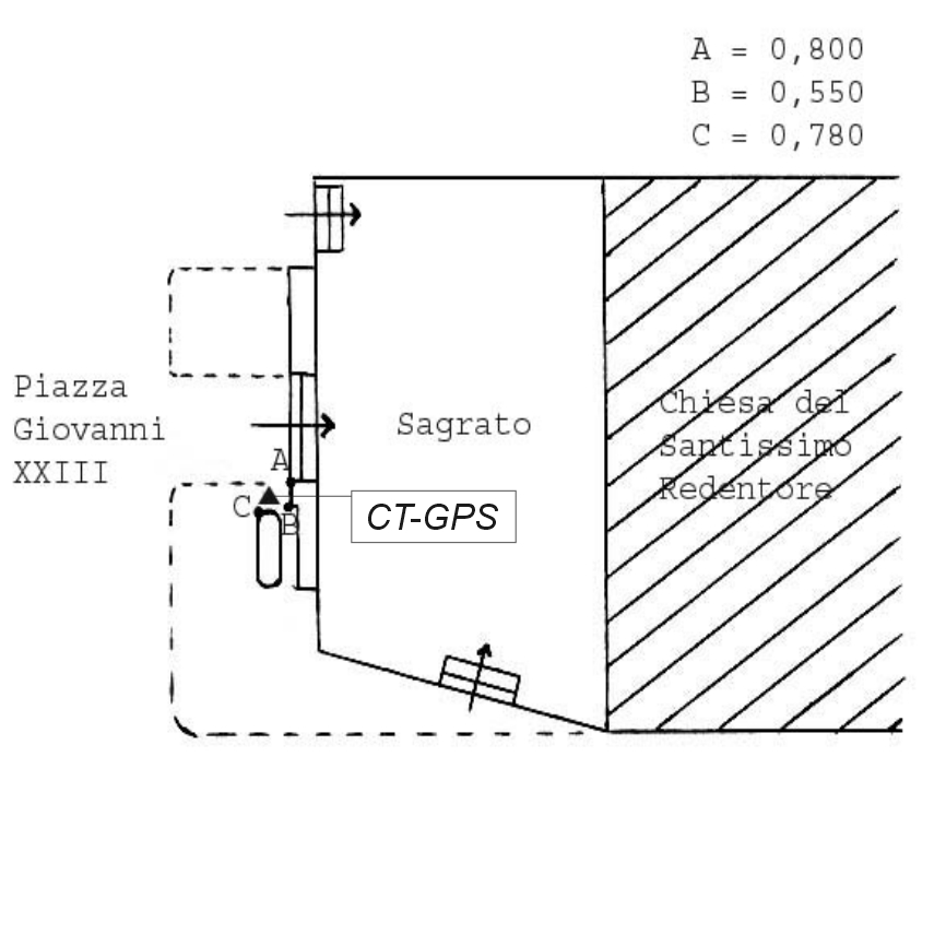 Centrino Regione Lombardia infisso sul marciapiede in pietra ubicato alla destra dell'ingresso principale al sagrato della chiesa del Santissimo Redentore, in Piazza Giovanni XXIII, a Seriate.