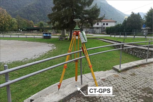Centrino Regione Lombardia infisso sul cordolo in calcestruzzo del muro di sostegno della piattaforma dell'area verde ubicata nei pressi del campo da calcio, in località Carenno.