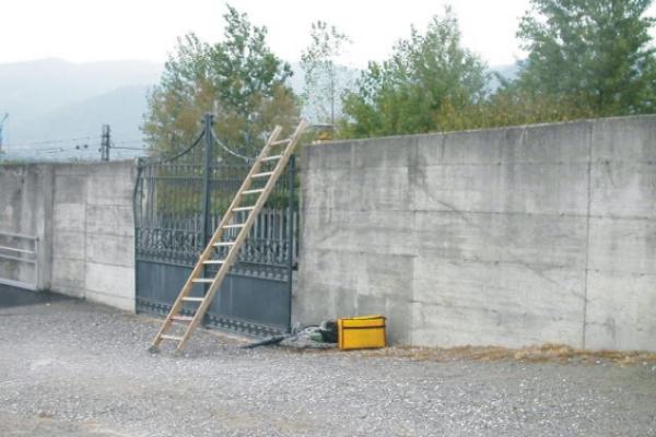 Centrino Regione Lombardia infisso sulla sommità del muro di cinta in calcestruzzo del cimitero di Lavello, sulla spalla sinistra, in corrispondenza dell'accesso di servizio.
