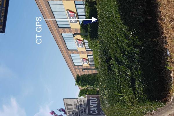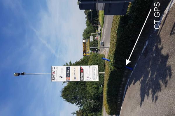 | materializzazione | Centrino Regione Lombardia infisso sul cordolo in calcestruzzo dell'aiuola che separa la carreggiata dal parcheggio del Brico Io, nei pressi del cancello d'ingresso, in località Mirabello. Attualmente il centrino è coperto da una folta siepe e per semplificare lo stazionamento è utile usare una palina del tipo Zeiss. |