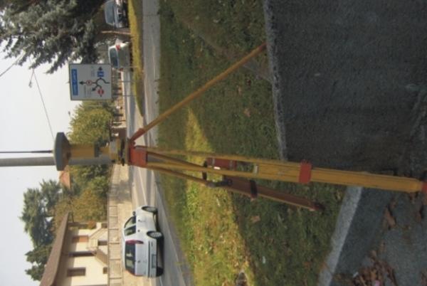 Centrino Regione Lombardia infisso sullo spigolo nord del muro di sostegno e divisorio in calcestruzzo che delimita il parcheggio e la pertinenza dell' Unione Sportiva Portichetto, a Luisago.