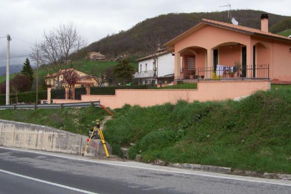 Centrino metallico infisso sulla sommità del muro di sostegno a monte della Vecchia S.S. 3 Flaminia, al km 175+950 a Nocera Umbra.