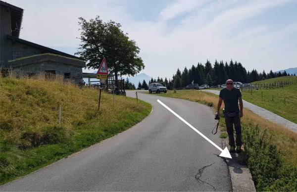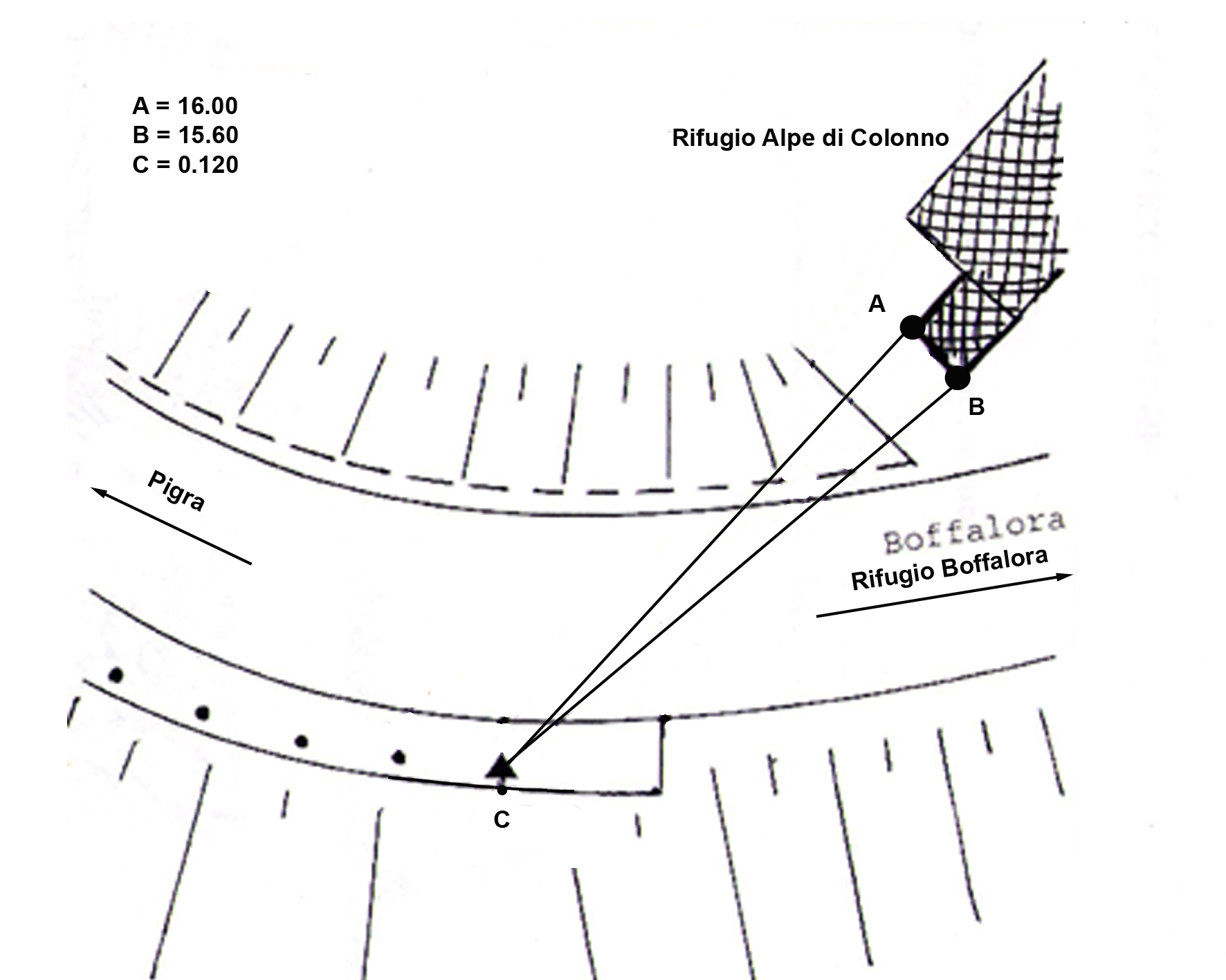 Centrino Regione Lombardia infisso sulla sommità del cordolo in calcestruzzo che si trova a valle della strada che da Pigra conduce al rifugio Boffalora, 30 m. prima del rifugio Alpe di Colonno.