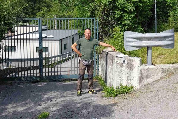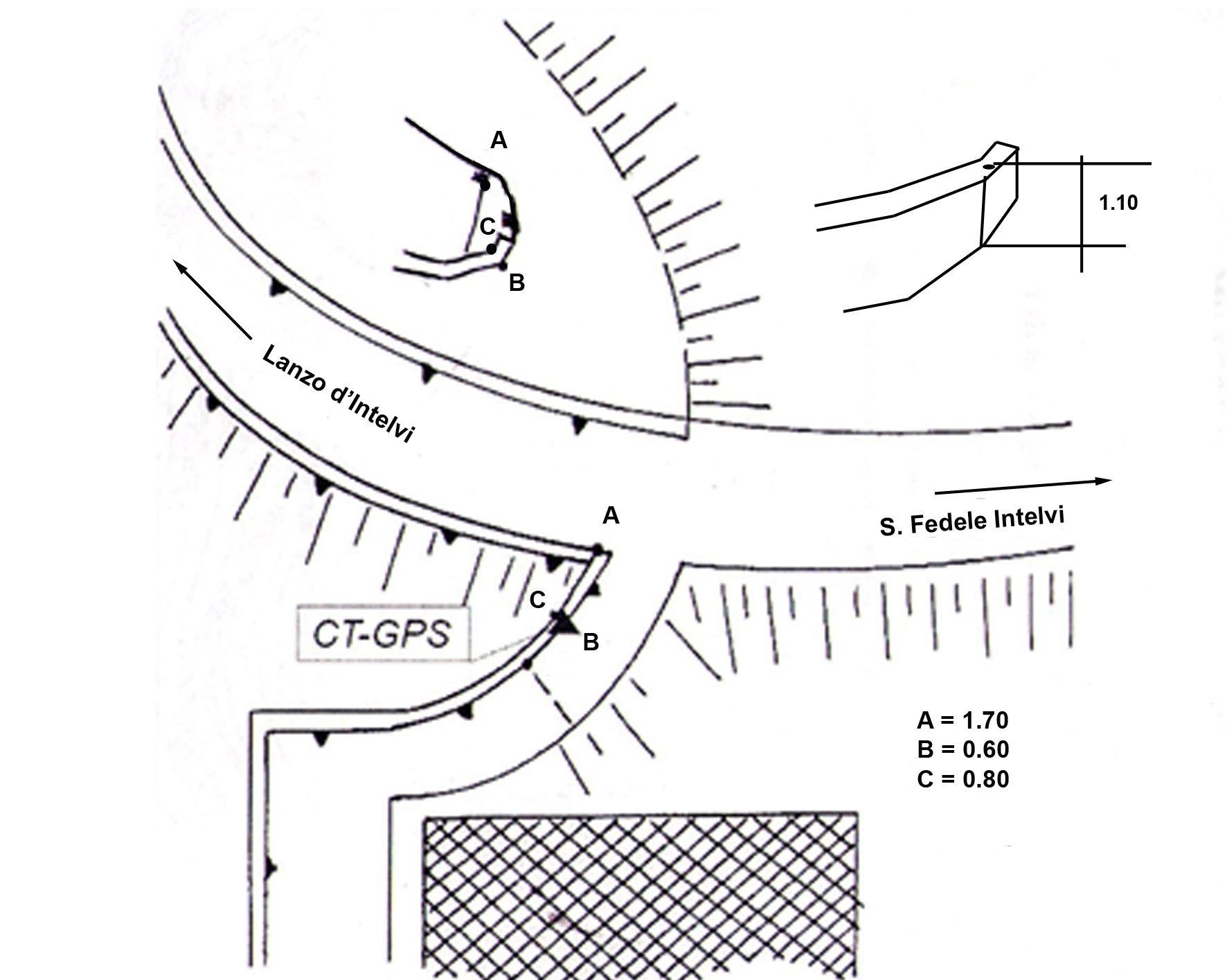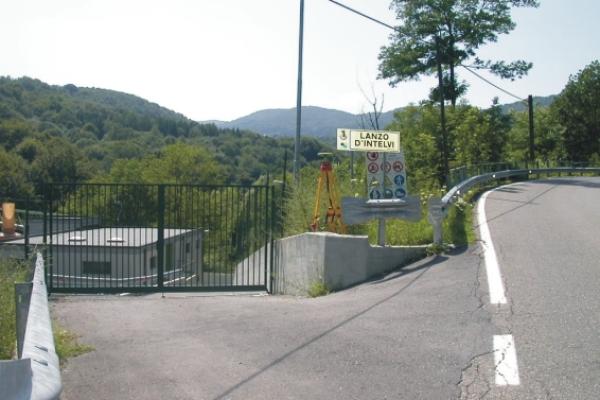 Centrino della Regione Lombardia infisso sul muro di sostegno in calcestruzzo posto all'incrocio tra la S.P. 13 e il civico 70, strada di accesso all'impianto di depurazione , 150 m. prima del centro abitato Scaria d'Intelvi venendo da Ramponio Verna.