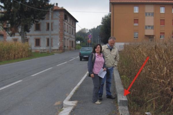 Centrino Regione Lombardia infisso sulla sommità del muretto divisorio in calcestruzzo ubicato in via Dominioni tra il civico 8 ed il civico 4, in località Oltrona.