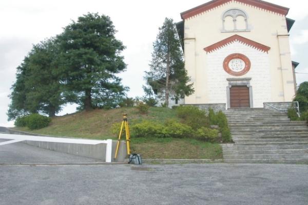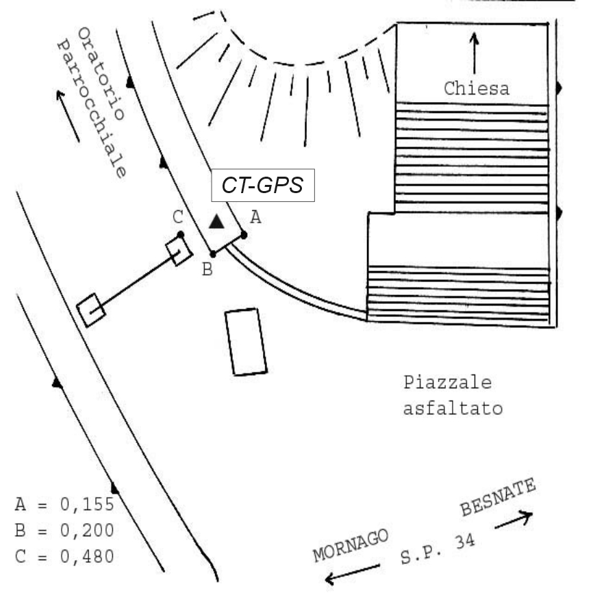 Centrino Regione Lombardia infisso sulla sommità , lato sud, del muro di sostegno in calcestruzzo della strada di accesso all'oratorio parrocchiale, in località Crugnola, al Km. 11,500 della S.P. 34.