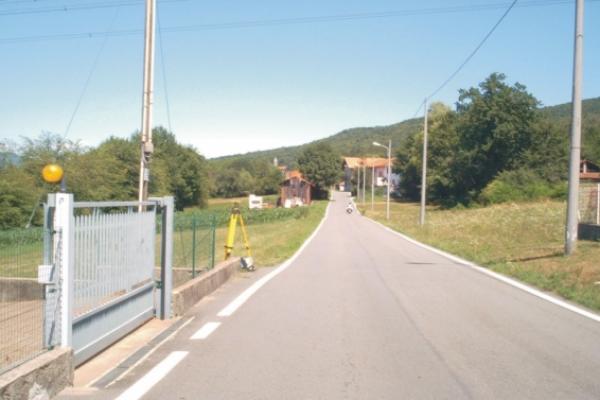 Centrino Regione Lombardia infisso sulla sommità del muretto di recinzione in calcestruzzo che delimita la proprietà del civ. 17 da via San Materno, a Lentate.