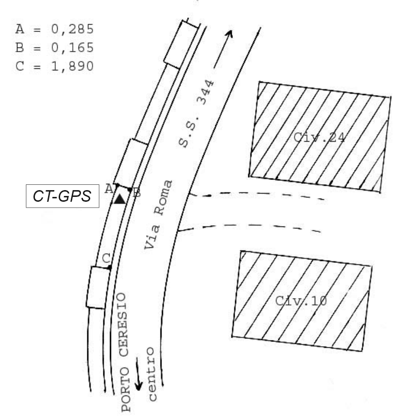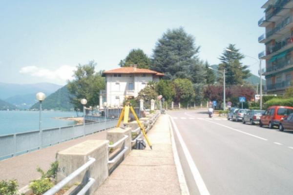 Centrino Regione Lombardia infisso sulla sommità del muro di sostegno in cemento armato ubicato all'altezza del Km. 11,750 della S.S. 344, in via Roma a Porto Ceresio.