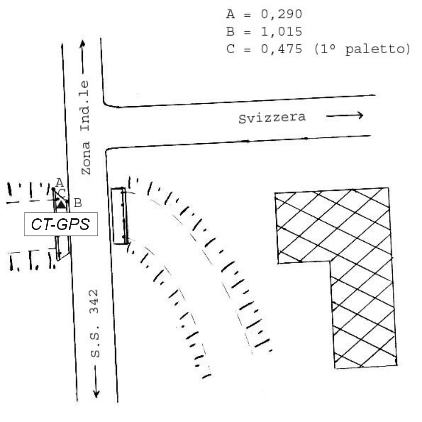Centrino Regione Lombardia infisso sulla sommità del cordolo in calcestruzzo del ponte di fronte al "Max Pneum Center", nella Zona Industriale di Varese.