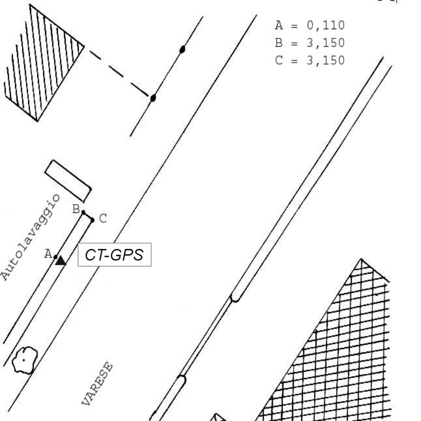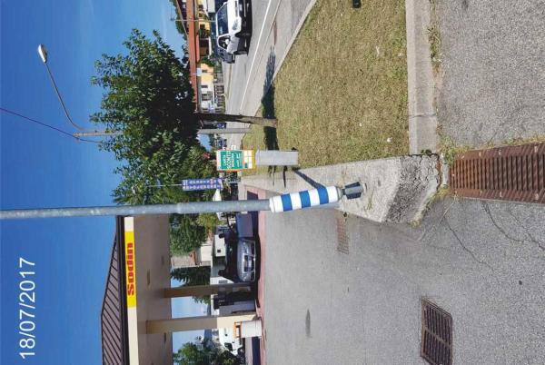 Centrino Regione Lombardia infisso sulla sommità del muretto in calcestruzzo delimitante la pertinenza di un autolavaggio, all'altezza del Km. 67,180 della S.S. 233, in località Marchirolo.