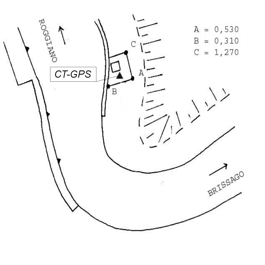 | materializzazione | Centrino Regione Lombardia infisso sullo spigolo sud-ovest del basamento in calcestruzzo di un pozzetto d'ispezione ubicato 700 metri dopo il cimitero di Brissago in direzione Roggiano, in località Roggiano. |