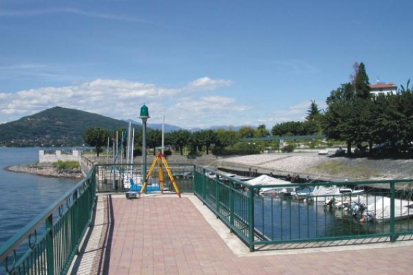 Centrino Regione Lombardia infisso sullo spigolo nord-ovest del muro di sostegno del pontile, all'altezza del Km. 4,850 della S.P.4, in località Ranco.