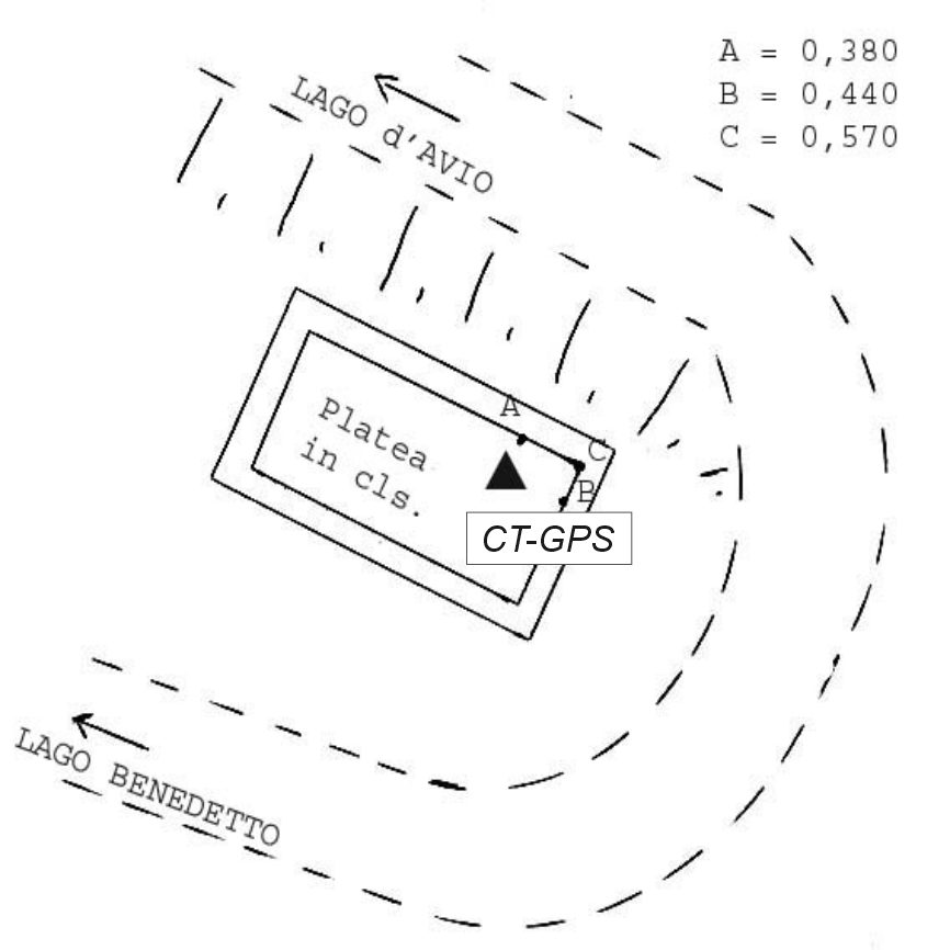 | materializzazione | Centrino Regione Lombardia infisso sullo spigolo nord-est della platea in calcestruzzo ubicata lungo la strada non asfaltata che dal lago d'Avio conduce al Lago Benedetto, 80 metri prima della diga tra i due laghi, in Val d'Avio. |