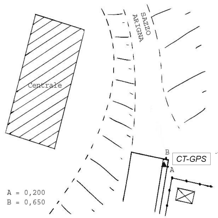 Centrino Regione Lombardia infisso sulla sommità, lato est, della rampa in calcestruzzo ubicata lungo la strada che fiancheggia da est la centrale Edison, a monte della stessa, in località Ca Pizzini.