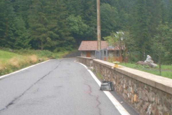 Centrino Regione Lombardia infisso sul cordolo in calcestruzzo del muro divisorio in pietra ubicato lungo la S.S. 294 al Km. 30,200, in località Baita Vittorio.