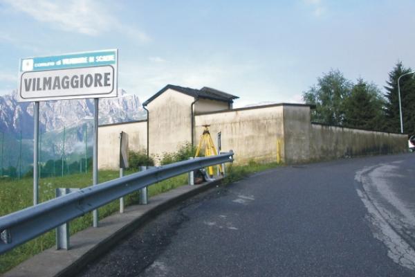Centrino Regione Lombardia infisso sul cordolo, lato ovest, del muro di sostegno in calcestruzzo della S.P. 61, al Km. 63,800, in località Vilmaggiore.
