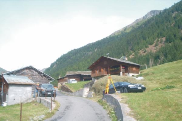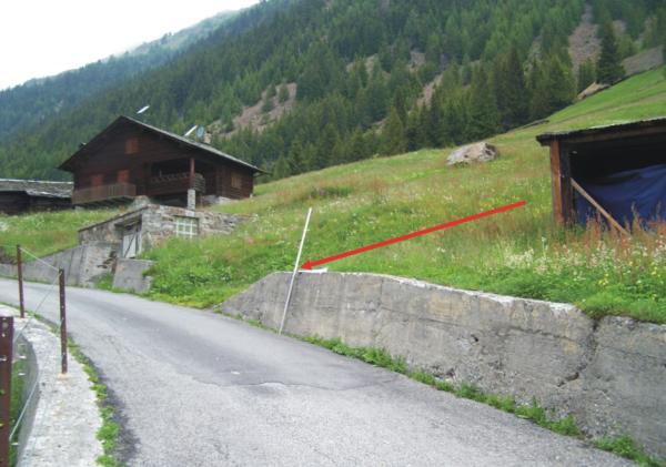 Centrino Regione Lombardia infisso sulla sommità del muro di sostegno in cemento della strada di Valdisecco, in località Ortesei.