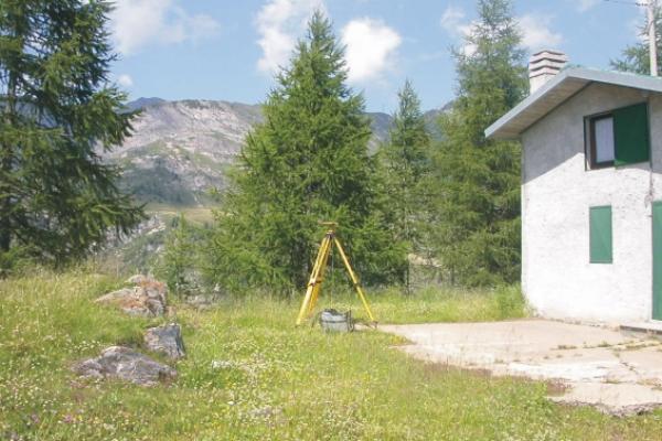 Centrino Regione Lombardia infisso sullo spigolo nord-ovest della platea in calcestruzzo antistante il rifugio "Maria Nive Candidior", nei pressi della diga sul lago Fregabolgia.