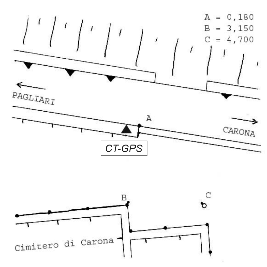 | materializzazione | Centrino Regione Lombardia infisso sulla sommità, lato est, del muretto divisorio in cemento ubicato lungo la S.P. 5, in località Carona, immediatamente a nord del cimitero del paese. |