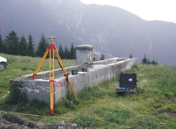 Centrino Regione Lombardia infisso sulla sommità, spigolo sud-ovest, della vasca della fontana ubicata alla fine della strada che da Berbenno di Valtellina conduce a Palaggio e prosegue verso Nord, nei pressi della località Pialzio.