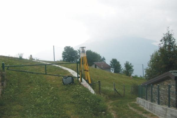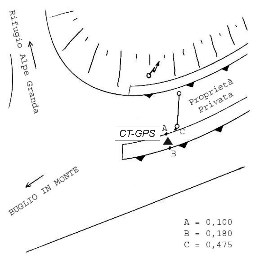 Centrino Regione Lombardia infisso sulla sommità del muro di sostegno in calcestruzzo di un accesso ad un edificio privato, lungo la strada che porta al rifugio Alpe Granda, in località Our di Cima.