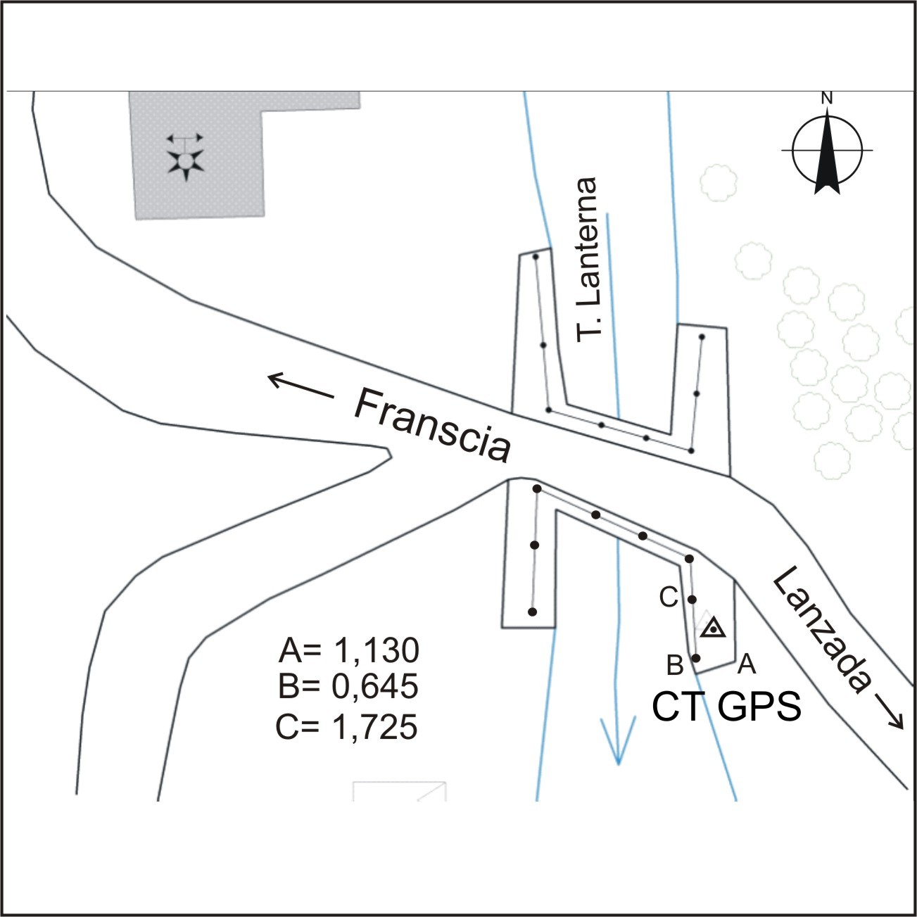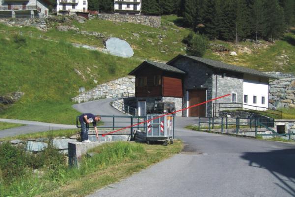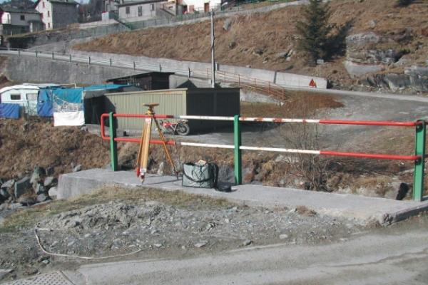 Centrino Regione Lombardia infisso sulla sommità del muro d'ala di valle riva sinistra in calcestruzzo del ponte della strada che conduce alla parte più alta di Franscia sul torrente Lanterna, in località Franscia.
