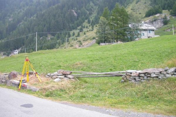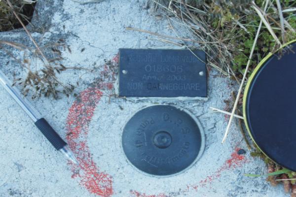 Centrino Regione Lombardia infisso sulla sommità del muro di sostegno in calcestruzzo a monte della strada che da Chiesa Valmalenco conduce a Chiareggio, poco dopo aver incontrato le prime abitazioni di Chiareggio, in località omonima.