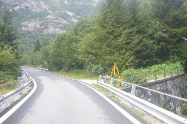 Centrino Regione Lombardia infisso sul cordolo in calcestruzzo della spalla sud-ovest del ponte della S.P. 9 sul torrente Masino, al Km. 15,650, in località Bagni del Masino.