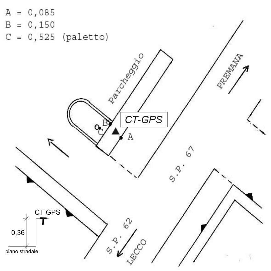 | materializzazione | Centrino Regione Lombardia infisso sulla sommità, lato sud, del muretto divisorio in calcestruzzo che separa la S.P. 67 da un piazzale asfaltato antistante l'edificio della "Banca Popolare di Lecco", in località Taceno. |