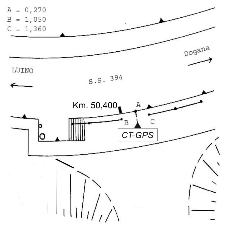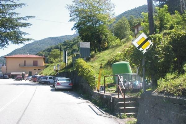Centrino Regione Lombardia infisso sulla sommità del muro di sostegno in cemento della S.S. 394, all'altezza del Km. 50,400, in località Zenna.