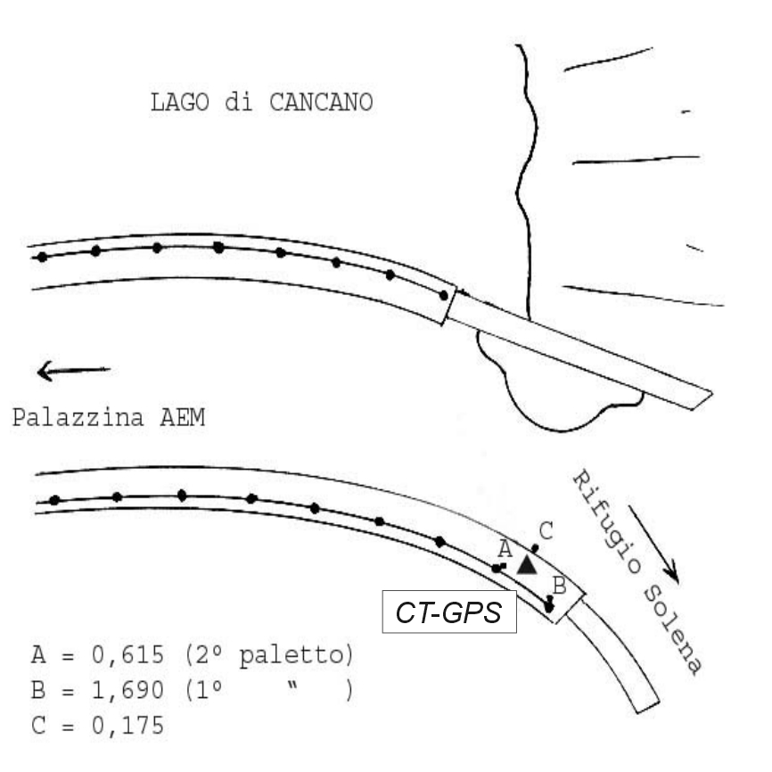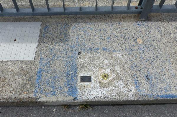 Centrino Regione Lombardia infisso sulla sommità del marciapiede in calcestruzzo sul lato sud della diga, lato est, di Cancano, in località lago di Cancano.