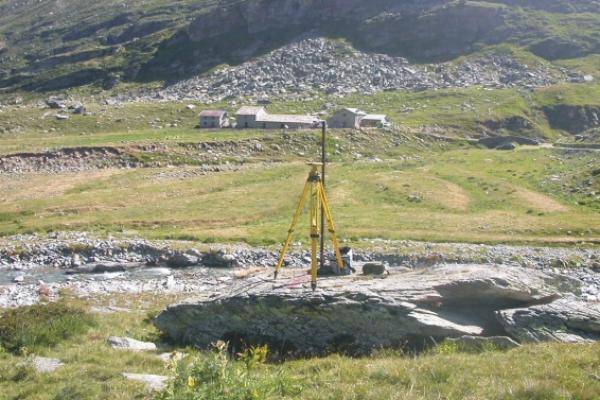 Centrino Regione Lombardia infisso su un grosso masso, vicino ad un palo in ferro e ad un bullone infissi nello stesso, in località Pian del Nido.