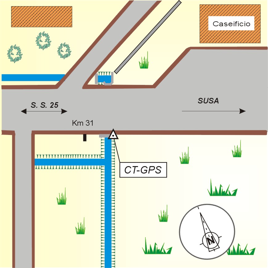 | materializzazione | Centrino GPS di tipo "D" (fuori centro) infisso sulla sommità del ponticello, posto in prossimità del Km 31,000 lato destro della strada, in prossimità della testata rivolta a Susa. |