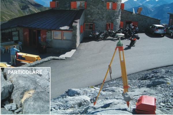 Centrino di tipo "GPS C" fissato su roccia in prossimità dell'albergo alpino Tibet .