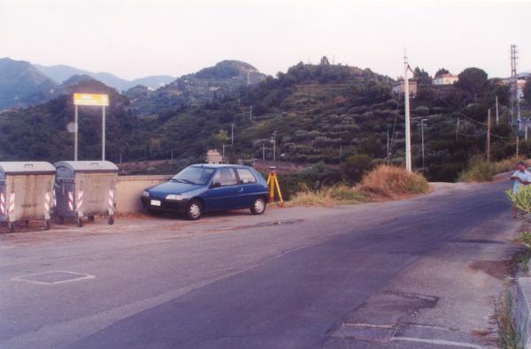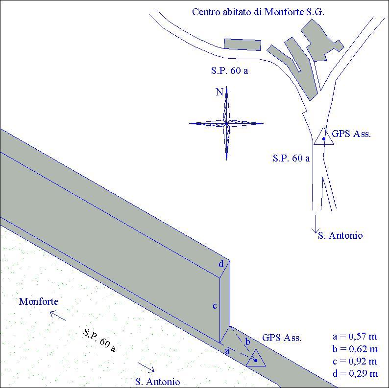 | materializzazione | Centrino in acciaio inox del tipo "GPS D" infisso nella testa del muro in cemento armato a margine della S.P.60. |