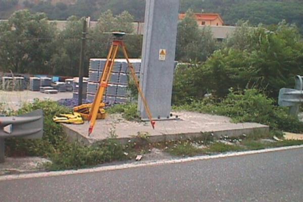 | materializzazione | Centrino in acciaio inox del tipo GPS da livellazione infisso sul basamento in cemento del supporto del grosso cartello stradale all'estremo nord del ponte sul fiume Bormida. |