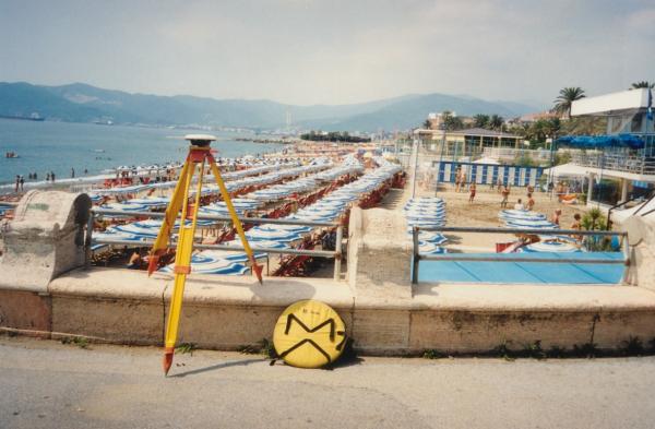 | Materializzazione | Centrino in acciaio inox del tipo GPS da livellazione infisso sulla seconda seduta prospicente i Bagni Savona. |