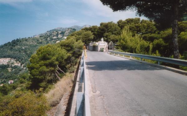 | Materializzazione | Punto fiduciale del Catasto materializzato da un centrino del in ghisa infisso sul cordolo in cemento armato del gard-rail sinistro salendo a Mortola Superiore a circa 42 mt. dall'ingresso del cimitero. |