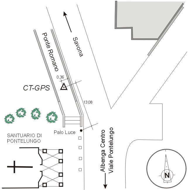 | Materializzazione | Centrino in acciaio inox del tipo GPS da livellazione infisso sul pavimento del ponte romano posto in località Pontelungo a nord dell'abitato di Albenga. |