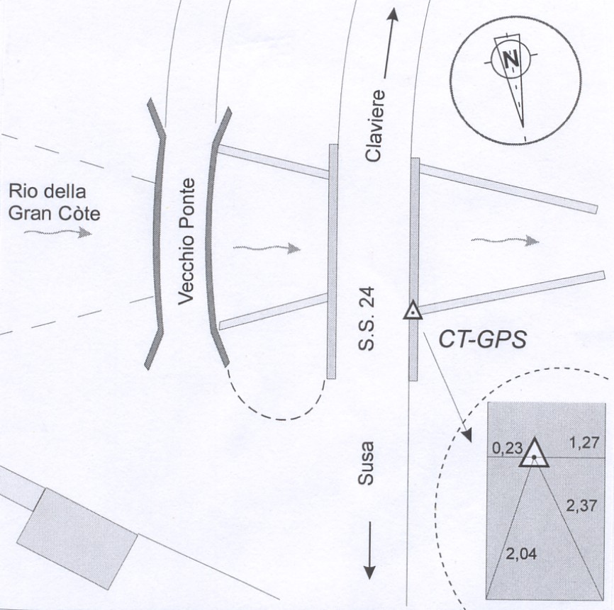 | materializzazione | Centrino in acciaio inox del tipo GPS da livellazione infisso alla sommità della soletta in cemento armato, lato a valle, in riva destra del nuovo ponte. |