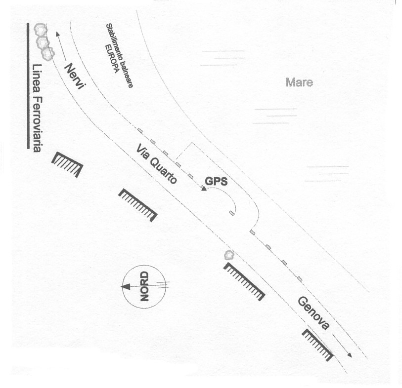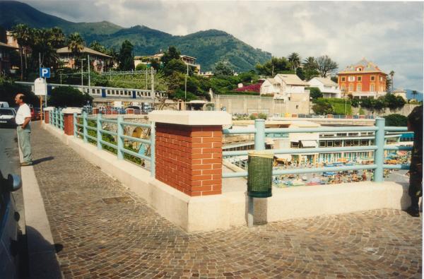 | materializzazione | Centrino in acciaio inox del tipo GPS da livellazione infisso sulla sommita' della cimasa in granito del primo pilastro in muratura dopo la piazzola del belvedere prospicente lo stabilimento balneare Europa. |