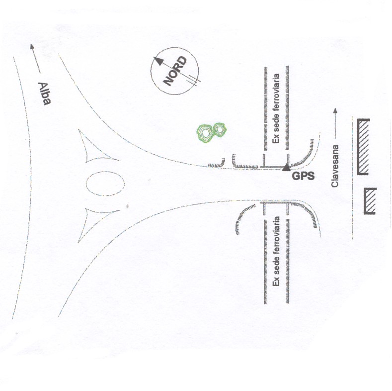 | materializzazione | Centrino in acciaio inox del tipo GPS da livellazione infisso sul marciapiede, lato Alba, del ponte sulla ex ferrovia. |